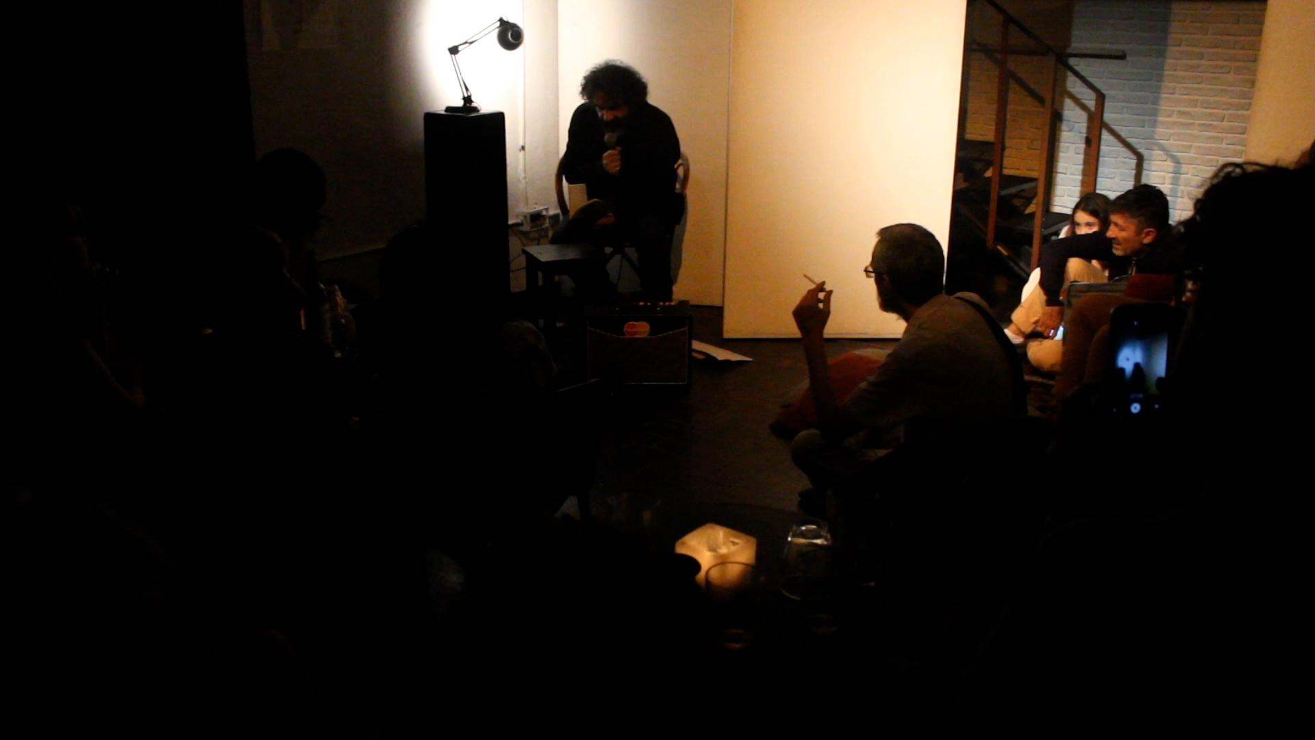 Todo comenzó, cuando Gabriel Cortiñas me llama y me dice que desde el Municipio de Hurlingham están pensando hacer una jornada homenaje a Rubio, y que necesitan imágenes. Pero no “Imagen Mala”, más bien lo que había quedado afuera de esa película o cualquier otro material que tuviera de otros lados. La historia de esa jornada luego se convertiría en parte de esta nueva o segunda película, pero antes, me encuentro buscando en los archivos que me pidieron y me llaman la atención dos elementos. Por un lado, un audio con la voz de Rubio recitando “Carta Abierta”, un clásico total de Ale, que extrañamente estaba perdido, que ni siquiera sabía que existía en los materiales. Por otro, una imagen realizada durante un festival de poesía organizado por la revista “Rapallo” en 2018. En la imagen, un grupo de personas camina por una calle de Bs As, es de noche. Poco a poco, se van separando y distinguiendo del grupo, Alejandro Rubio y Martín Gambarotta, que continúan caminando, y van charlando a la par.