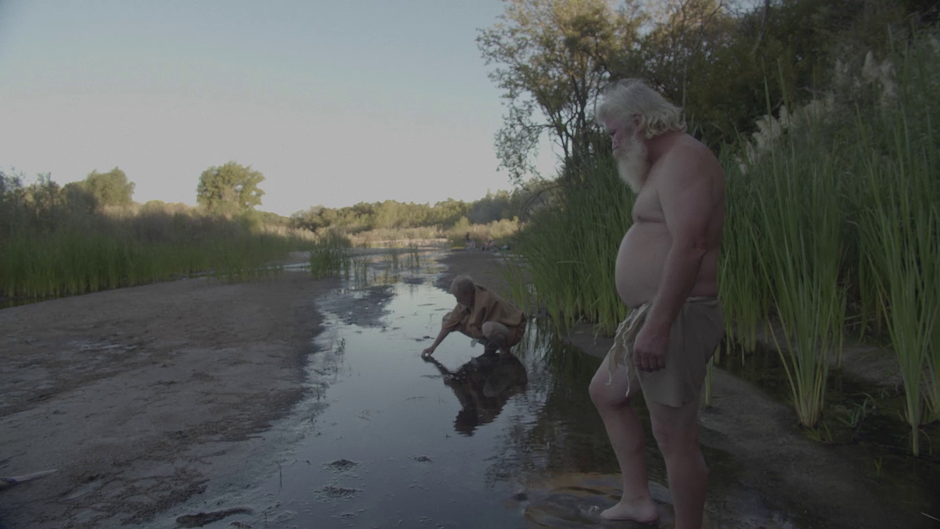 Una comunidad que, a lo largo de varias películas (Germania, La helada negra, La siesta del tigre, Jesus López), fue convirtiéndose en un mundo cinematográfico, con sus espacios reconocibles y sus personajes recurrentes. El lecho arenoso del río en el que buscan fósiles y comen asado es un lugar del cine como lo es la calle Corrientes de Buenos Aires. Nino y Lalo tienen la épica de las estrellas, viven en la pantalla con una intensidad que excede el registro documental. Por eso Sombra grande pertenece al territorio del mito, de la ficción, y no del documental biográfico o etnográfico, porque lo que retrata es la continuidad de unas vidas que vimos nacer previamente en otras ficciones, y cuando aparecen aquí, acarrean una historia ya conocida, una serie de emociones previas.